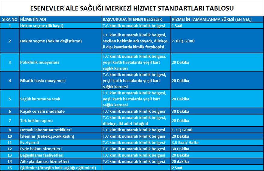 Aile Sağlığı Merkezimizde Verilen Hizmetlerin Listesi